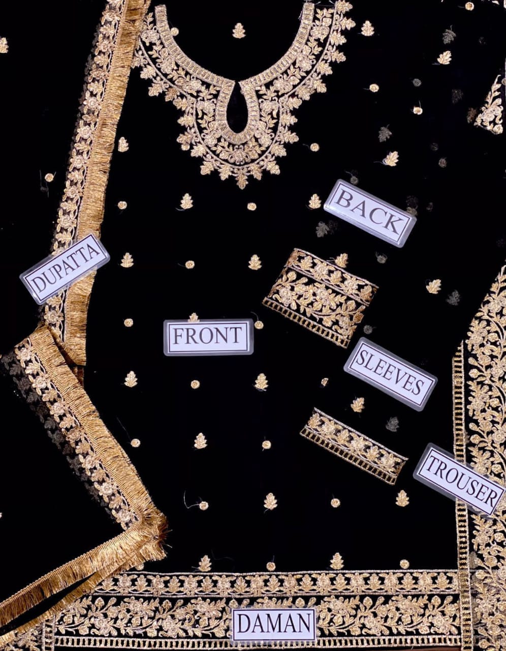 •Heavy embroidered chiffon back (Embroidered Daman Patch)