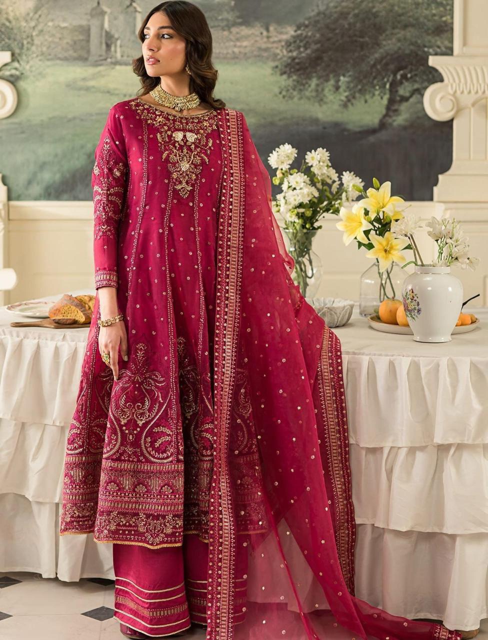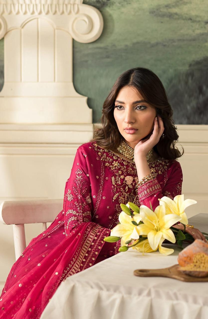 Asim Jofa Chiffon 3-Piece Suit – Exquisite Embroidered Luxury Ensemble – Maroon