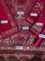 Emaan Adeel Unstitched Replica – Elegant Organza Suit with Satin Silk Trouser and Handwork