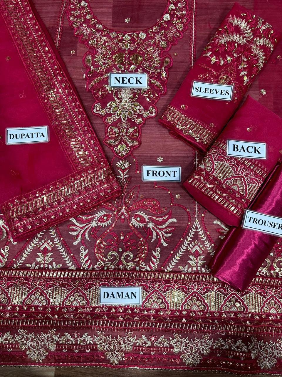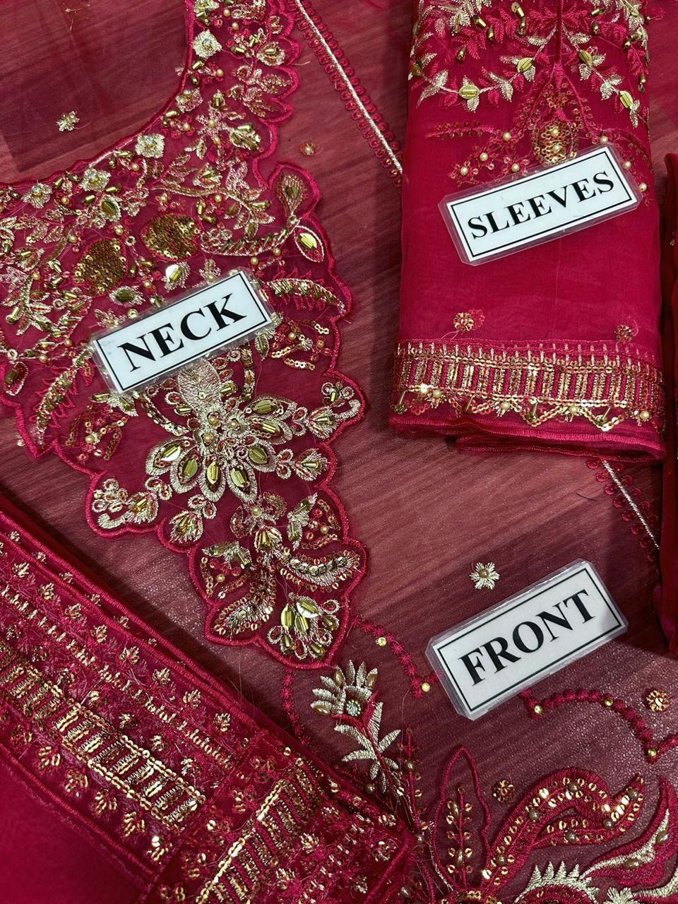 Home Unstitched Festive/ Embroidered Collection Emaan Adeel Unstitched Replica – Elegant Organza Suit with Satin Silk Trouser and Handwork