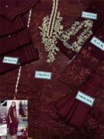 Asim Jofa Chiffon 3-Piece Suit – Exquisite Embroidered Luxury Ensemble – Maroon