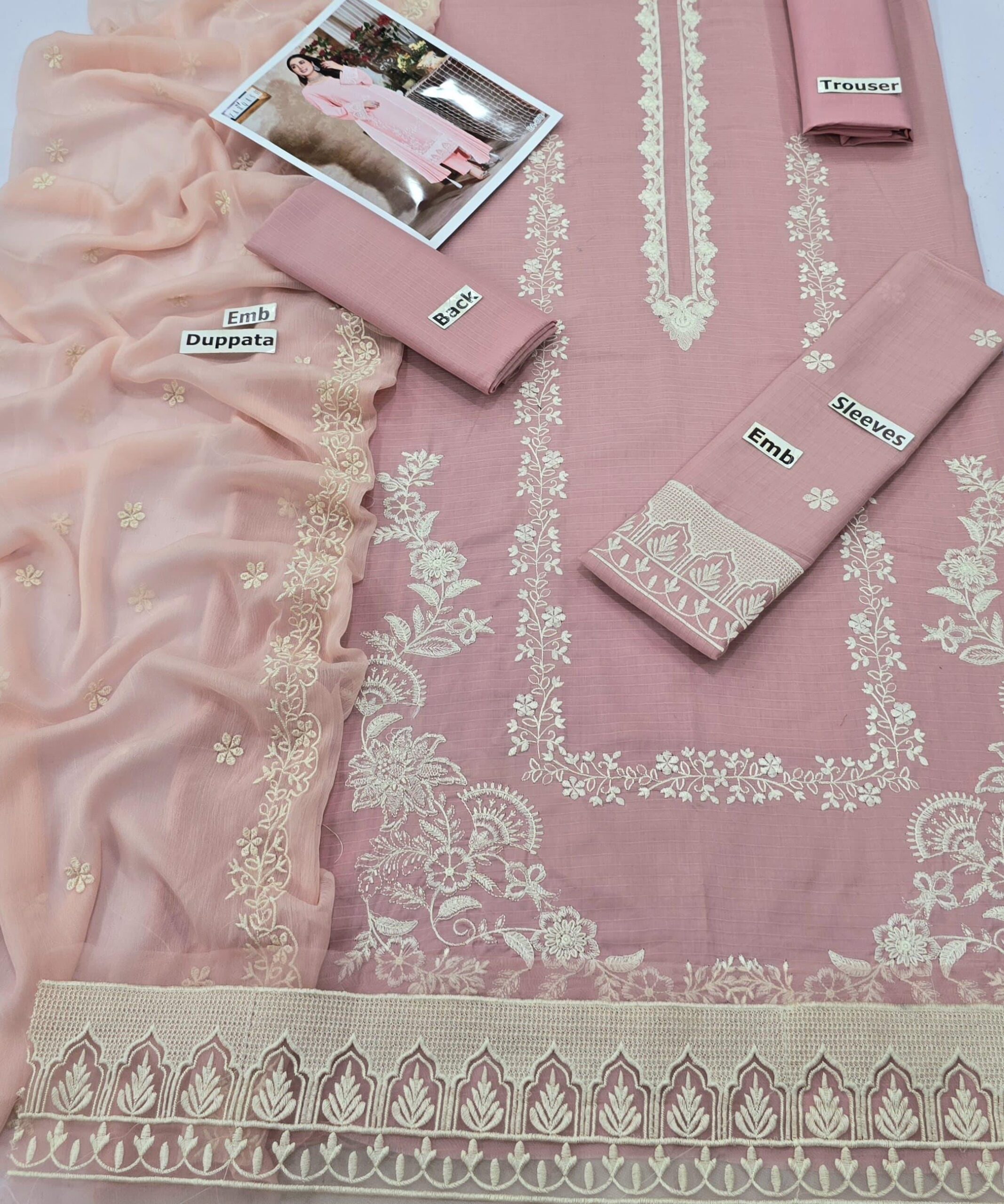 Front: Embroidered Lawn front with embroidered daman patch, & full embroidered sleeves