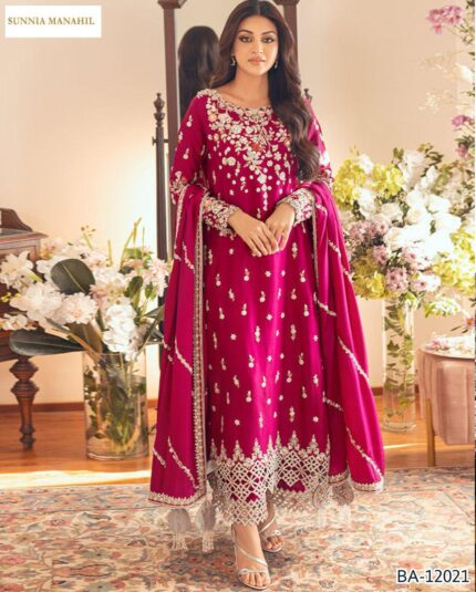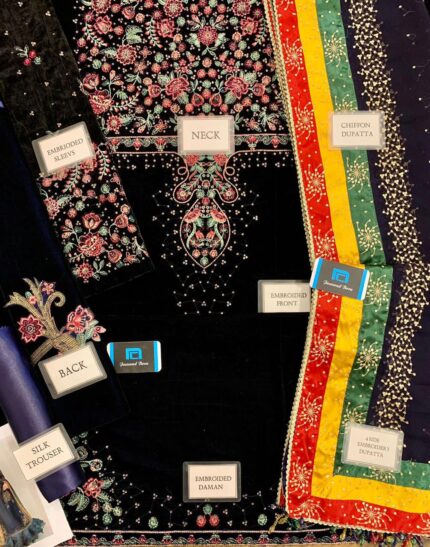 Jazmine Luxury Velvet 3-Piece Embroidered Suit – Black & Navy Blue