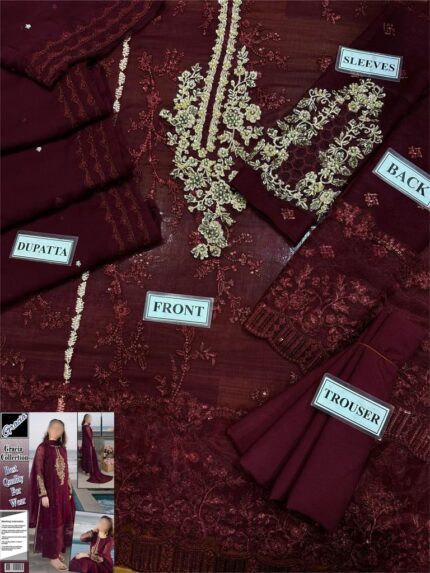 Zainab Chottani Replica Velvet 3-Piece Suit – Elegant Embroidered Design